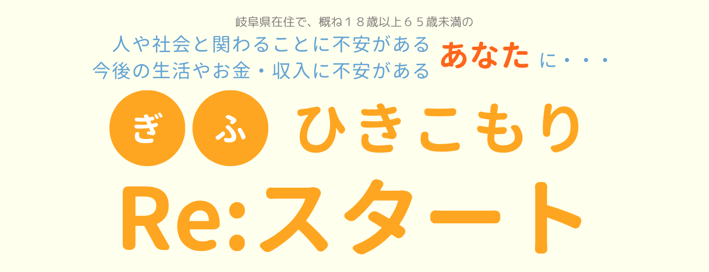 私たち【ぎふ ひきこもり Re:スタート】は、あなたの不安や悩みを一緒に考え、「ここから再スタートしたい」という気持ちを応援する、岐阜県の無料支援窓口です。